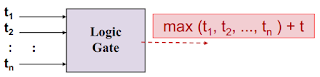 A logic gate with delay t. If inputs are stable, then the earliest time in which the output will be stable is: